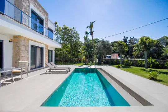 Bodrum / Koyunbaba mevkiinde konumlanan bu seçkin villa, 5 yatak odası ve 10 kişilik konaklama kapasitesiyle kalabalık aileler ve arkadaş grupları için ideal bir konaklama alternatifi sunmaktadır. Geniş bahçesiyle ferah bir açık alan deneyimi sağlayan villa, denize yalnızca 200 metre mesafede konumlanarak misafirlerine yürüyüş mesafesinde deniz keyfi imkânı sunar.