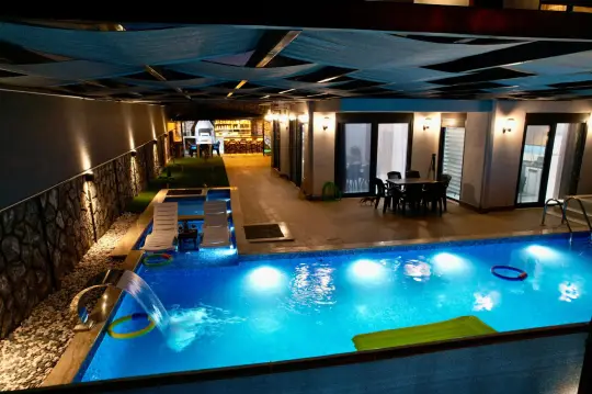 Antalya’nın doğal ve tarihi dokusuyla öne çıkan Demre bölgesinde konumlanan bu özel kiralık villa, 4 yatak odası ve 8 kişilik konaklama kapasitesiyle kalabalık aileler ve arkadaş grupları için konfor odaklı bir tatil alternatifi sunmaktadır. Modern mimari anlayışıyla tasarlanan villa, geniş ve ferah yaşam alanları, kullanışlı mutfak donanımı ve özenle dekore edilmiş odalarıyla misafirlerine ev konforunda bir konaklama deneyimi sağlamaktadır. Villanın dış havuzu ısıtmalı olarak planlanmış olup yılın farklı dönemlerinde de havuz keyfi yaşama imkânı sunar. İç mekânda yer alan çift jakuzi ise günün yorgunluğunu atabileceğiniz ayrıcalıklı bir dinlenme alanı oluşturarak tatilinize konfor ve rahatlama katmaktadır.