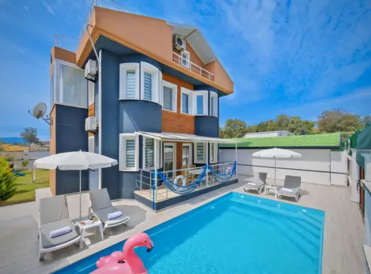 Bir de işin en keyifli kısmı var: özel havuz ve denize yakın konum. Gün içinde havuz başında dinlenip akşamüstü Çalış sahiline geçmek, restoranlara ve yürüyüş hattına hızlıca ulaşmak ciddi bir avantaj. Kısacası hem sakinlik arayanlara hem de “tatilde her şey elimin altında olsun” diyenlere hitap eden, planlamayı kolaylaştıran bir villa deneyimi sunuyor.
