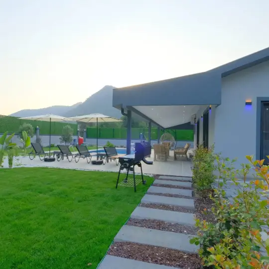 Doğanın kalbinde yer alan villada, modern mimariyle birleştirilmiş konforlu yaşam alanları, tam donanımlı mutfak, ferah salon ve özenle düzenlenmiş bahçe alanı bulunmaktadır. Gün boyu güneş alan havuz terasında sevdiklerinizle keyifli vakit geçirebilir, sessiz ve sakin atmosferde huzurlu bir tatilin tadını çıkarabilirsiniz.