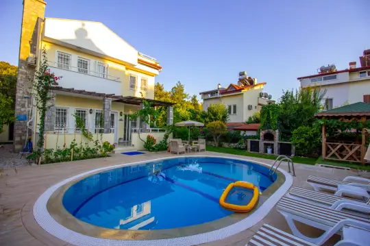 Fethiye’nin popüler tatil bölgelerinden Çalış’ta konumlanan bu modern villa, 3 yatak odası ve 6 kişilik konaklama kapasitesiyle aileler ve arkadaş grupları için ideal bir tatil konaklama seçeneğidir. Denize sadece 400 metre mesafede yer alan villa, merkezi konumu sayesinde plaja, restoranlara, marketlere ve toplu taşımaya kolay erişim imkânı sunar.