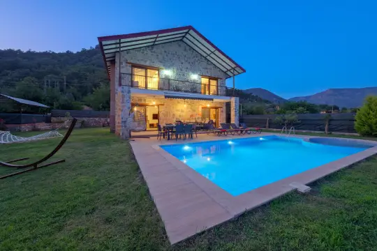 Doğanın huzurunu taş mimarinin zarafetiyle birleştiren bu özel villa, Fethiye’nin sakin ve yeşillikler içindeki İnlice mevkiinde yer almaktadır. 3 konforlu yatak odasıyla toplam 8 kişiye kadar konaklama imkânı sunan villa, geniş bahçesi ve keyifli açık alanlarıyla kalabalık aileler ve arkadaş grupları için ideal bir tatil atmosferi oluşturur.