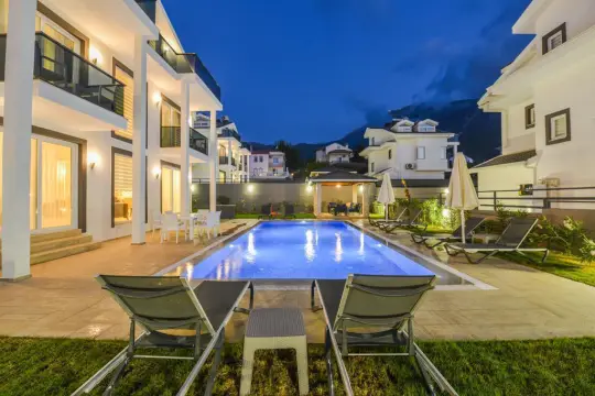 Dış yaşam alanında ferah bahçe kullanımı, özel yüzme havuzu, barbekü köşesi ve güneşlenme alanlarıyla gün boyu yüksek kullanıcı deneyimi sağlar; bu kapsamlı donanım, fethiye kiralık villa arayışında olan misafirler için güçlü bir tercih sebebi yaratır. İç mekânda ise geniş oturma alanı, modern ve tam donanımlı mutfak ile özenle dekore edilmiş yaşam alanları, uzun süreli konaklamalarda dahi ev konforunu sürdürülebilir kılar.