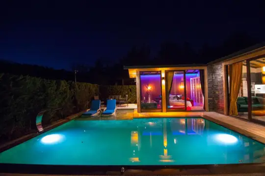 Fethiye’nin huzurlu ve tarihi atmosferiyle öne çıkan Kayaköy mevkiinde konumlanan bu özel villa, balayı çiftlerine unutulmaz bir tatil deneyimi sunuyor. Tamamen korunaklı yapısı sayesinde gözlerden uzak bir konaklama imkânı sağlayan villa, modern tasarımıyla romantizmi ve konforu bir arada sunuyor. Özel jakuzisi, yılın her döneminde keyifli vakit geçirmenizi sağlayan ısıtmalı havuzu ve doğayla iç içe bahçe alanı ile çiftlere dinginlik dolu bir atmosfer vadediyor. Gün batımında havuz başında romantik akşamlar geçirebilir, Kayaköy’ün mistik dokusunu keşfederek tatilinize anlam katabilirsiniz.