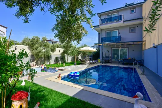 Villada yer alan tam donanımlı mutfak, ferah salon ve her biri özenle dekore edilmiş yatak odaları, konaklamanızı ev konforunda geçirmenizi sağlar. Ayrıca villanın konumu, Fethiye merkezine ve popüler plajlara kısa sürüş mesafesindedir. Gün batımını izleyebileceğiniz terasıyla tatilinize ayrı bir güzellik katar.