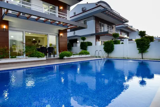 Fethiye’nin doğayla bütünleşen, sakin ve erişilebilir lokasyonlarından Çiftlik mevkiinde konumlanan bu seçkin villa; 4 yatak odasıyla 8 kişiye kadar konforlu konaklama kapasitesi sunarak kalabalık aileler ve arkadaş grupları için güçlü bir “tatil çözümü” üretir. Geniş peyzajlı bahçesi, gün boyu güneş alan özel yüzme havuzu ve dış mekân oturma-dinlenme alanlarıyla hem sosyal kullanım hem de dinlenme odaklı bir deneyim kurgulanmıştır. Mahremiyet ve rahatlığı aynı potada buluşturan bu yapı, doğa içinde villa tatili arayan misafirler için yüksek memnuniyet potansiyeli taşırken, aynı zamanda Fethiye’de villa kiralama aramalarında öne çıkan “özel havuzlu, geniş bahçeli, aileye uygun” kriterlerini net biçimde karşılar.
