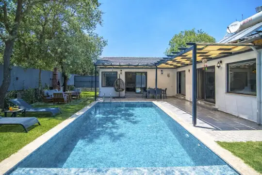Mahremiyet odaklı tasarlanan dış alanında yer alan özel yüzme havuzu, çevresel görünürlüğü minimize eden yapısıyla güvenli ve rahat bir kullanım sağlar; bu sayede tatil boyunca dış etkenlerden bağımsız şekilde keyifli vakit geçirebilirsiniz. Kayaköy’ün huzurlu atmosferinde, geniş bahçe ve güneşlenme alanlarıyla desteklenen bu korunaklı havuzlu kiralık villa seçeneği; hem dinlenme hem de kaliteli zaman yönetimi açısından avantaj sağlar. Bölgenin doğa yürüyüş rotalarına ve Fethiye merkez aksına erişim kolaylığı, tatilinizi planlı ve verimli şekilde kurgulamanıza yardımcı olur.