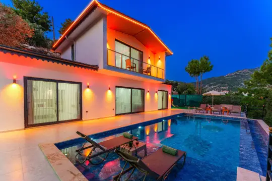 Kalkan İslamlar mevkiinde yer alan 3 odalı, 6 kişilik konaklama kapasitesine sahip panoramik deniz manzaralı jakuzili kiralık villamız, hem aileler hem de arkadaş grupları için konforlu ve keyifli bir tatil alternatifi sunmaktadır. Doğayla iç içe, sakin ve ferah bir konumda yer alan villa, Kalkan’ın eşsiz deniz ve gün batımı manzarasını yüksek kotta konumuyla misafirlerine geniş bir perspektiften izleme imkânı sağlar.