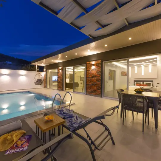 * Konforlu ve esnek tatil modeli: Özel havuz, geniş bahçe, barbekü alanı gibi donatılar ve kişi başı avantajlı maliyetler sayesinde, otel kısıtları olmadan dilediğiniz saatte havuz kullanımı ve esnek bir tatil planı mümkündür.