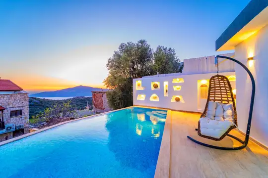 Kalkan’ın panoramik manzarasıyla öne çıkan Kördere mevkiinde konumlanan bu 2 kişilik kapalı ısıtmalı havuzlu kiralık balayı villası; dört mevsim konaklama hedefleyen çiftler için “mahremiyet + konfor + erişilebilirlik” üçlüsünü aynı deneyim altında konsolide eder. Kalkan merkeze ve plaj hattına kısa sürüş mesafesi sayesinde gün içi planlamada operasyonel esneklik sağlarken, yüksek kot avantajıyla manzara ve ferahlık metriklerinde üst segment bir konaklama standardı sunar.