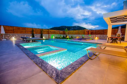 Kalkan Bezirgan’da konumlanan bu 2 yatak odalı, 4 kişilik kapasiteli muhafazakâr konsept lüks kiralık villa, dışarıdan görünmeyen korunaklı havuz alanı sayesinde tam mahremiyet odağında konaklama deneyimi sunar. Modern ve premium çizgide kurgulanan iç mekân; konforlu oturma alanı, fonksiyonel donanımlı mutfak ve özenle planlanmış yatak odalarıyla “ev konforu + villa ayrıcalığı” dengesini güçlendirir. Havuz terasında güneşlenme alanı ve dinlenme köşeleri ile gün boyu size özel bir yaşam alanı sağlanırken, akşamları Bezirgan’ın sakin atmosferinde huzurlu bir kapanış yaparak tatilinizi yüksek memnuniyet standardında tamamlayabilirsiniz.