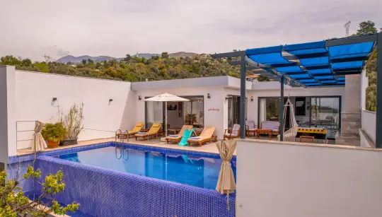 Kalkan Üzümlü Bölgesinde 4 Kişilik Jakuzili Korunaklı Havuzlu Kiralık Villa