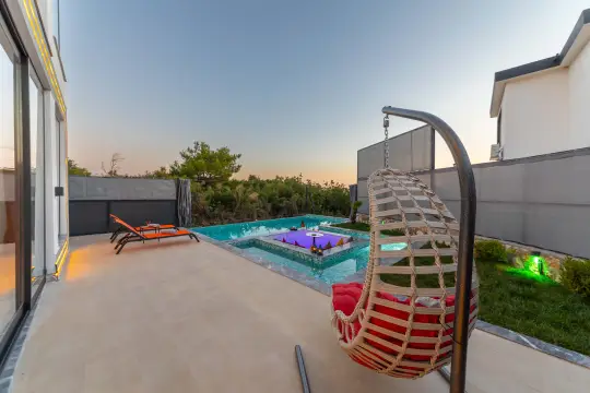 Villanın öne çıkan değer önerilerinden biri jakuzi alanıdır. Balayı konseptinde “dinlenme + romantik deneyim” dengesini güçlendiren jakuzi, günün sonunda konaklamaya premium bir dokunuş ekler. Çift odaklı planlama, hem alan yönetimini hem de tatil akışını sadeleştirir; böylece misafir, zamanını operasyonel detaylarla değil tatilin kendisiyle yönetir.