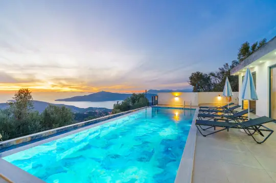 Kalkan Kördere’nin yüksek kot avantajıyla panoramik deniz manzarasını maksimumda sunan bu 2 yatak odalı, 4 kişilik kiralık villa; deniz manzarası + jakuzi + korunaklı havuz alanı üçlüsünü aynı ürün segmentinde birleştirerek balayı çiftleri ve çekirdek aileler için güçlü bir konaklama alternatifi oluşturur. Bölgenin sakin dokusu ve manzaraya hâkim konumlanması sayesinde gün boyu ferah bir atmosfer sağlarken, mahremiyeti önceleyen korunaklı havuz kurgusu tatil deneyiminizi dış etkilerden arındırılmış, kontrol edilebilir bir konfor standardına taşır.