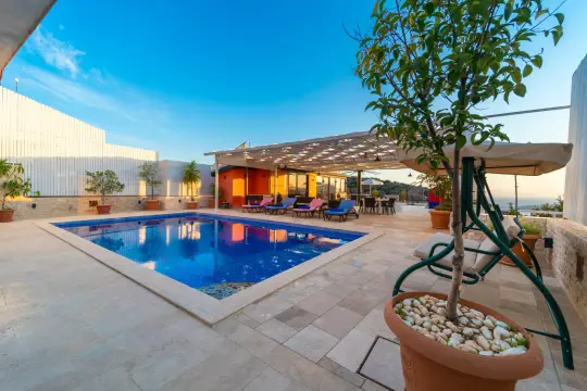 Kalkan Kördere’nin yüksek kot avantajıyla panoramik Akdeniz manzarasına açılan bu 3 yatak odalı, 6 kişilik kiralık villa; dört mevsim konaklama kurgusu için kapalı ısıtmalı havuz ve sauna gibi üst segment donatılarla güçlü bir değer önerisi sunar. Gün boyu değişen ışık tonlarını manzaraya karşı izleyebileceğiniz ferah yaşam alanı, “ev konforu + otel standardı” beklentisini aynı çatı altında yönetirken; fonksiyonel mutfak ve geniş salon yerleşimi, uzun konaklamalarda dahi operasyonel rahatlık sağlar.