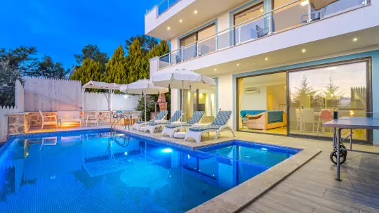 Gün sonunda doğa manzarası eşliğinde sunulan jakuzi detayı, konaklamaya premium bir konfor katmanı ekleyerek dinlenme ve yenilenme deneyimini güçlendirir; bu yönüyle villa, Jakuzili Kiralık Villalar kategorisinde değerlendirilebilecek nitelikli seçenekler arasında öne çıkar. 2 odalı plan ve 5 kişilik kapasite, çocuklu aileler ile arkadaş grupları için dengeli bir kullanım sunarken; Üzümlü’nün Kalkan merkez ve çevre rota noktalarına erişim avantajı da tatil programının “gündüz keşif, akşam sakinlik” kurgusuyla planlanmasına imkân tanır. İsterseniz bunun 2 farklı alternatif versiyonunu daha (daha satış odaklı / daha premium dilde) da hazırlayabilirim.