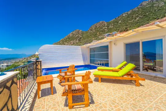 Kalkan Sarnıçbaşı’nda konumlanan bu 2 yatak odalı, 4 kişilik kiralık villa; deniz manzarası, kapalı ısıtmalı havuz ve konfor odaklı planlaması ile dört mevsim tatil beklentisine güçlü bir yanıt verir. Bölgenin sakin atmosferi sayesinde hem dinlenme hem de kaliteli zaman geçirme hedefi olan misafirler için ideal bir alternatif sunar.