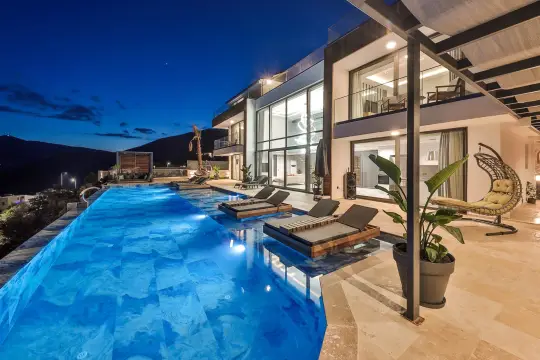 Kalkan Kalamar mevkiinde konumlanan bu seçkin kiralık villa; 6 yatak odası ve 12 kişilik konaklama kapasitesiyle kalabalık aileler ile birlikte tatil planlayan arkadaş grupları için üst segment bir konaklama çözümü sunar. Geniş metrekareye yayılan ferah yaşam alanları, gün boyu Akdeniz’in etkileyici deniz manzarasını kesintisiz deneyimleme imkânı sağlarken; merkeze yakın lokasyon avantajı sayesinde restoran, kafe, market ve plaj akslarına araçla kısa sürede erişim mümkün olur.