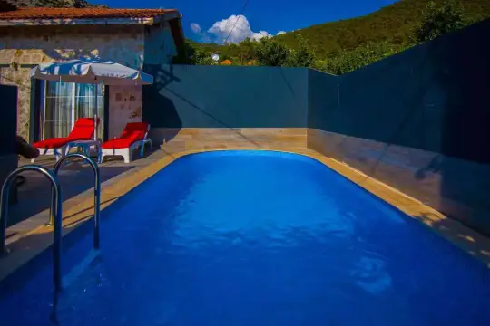 Kalkan Üzümlü’nün doğayla iç içe, sakin atmosferinde konumlanan bu 1 odalı, 2 kişilik kiralık balayı villası; mahremiyet, konfor ve romantik deneyimi tek çatı altında sunmak üzere kurgulanmıştır. Korunaklı havuz alanı sayesinde dış gözlerden izole bir tatil akışı yakalayabilir; gün boyu havuz keyfini tamamen size ait bir alanda yaşayabilirsiniz.
