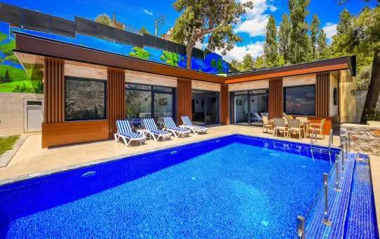 Dış alanda özel havuzun yanında çocuklar için ayrı planlanan çocuk havuzu, ailelerin geçirdiği vakit geçirmesine olanak tanırken; Güneşlenme alanları ve oturma köşeleri gün boyu dinlenirken, akşam saatlerinde ise gün biterken keyifli anlar için ideal bir atmosfer oluşur. Kalkan merkeze ve popüler plajlara araçla kısa sürüşlü konumlanan bu villa, deniz manzarası ve aile dostu bağışlarıylaÇocuk Havuzlu Kiralık Villalararasında öne çıkan, jakuzili ve bahçeli bir tatil alternatifi misafirler için doğru bir seçenek sunuyor.