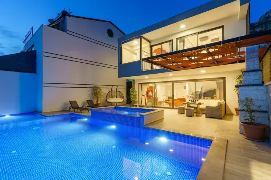 Kalkan Kördere Bölgesinde 4 Kişilik Deniz Manzaralı Jakuzili Kiralık Villa
