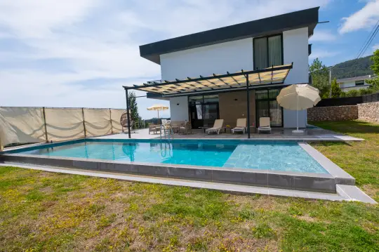 Kalkan İslamlar mevkiinde konumlanan bu şık kiralık villa, 4 yatak odalı ve 8 kişilik konaklama kapasitesiyle kalabalık odalar ve arkadaş grupları için ölçeklenebilir bir konaklama çözümü sunmaktadır. Geniş metrekareye yayılan ferah yaşam alanları; İç mekânda konfor, dış mekânda ise geniş bahçe avantajını aynı deneyim kurgusunda birleştirerek gün boyu rahat bir tatil analizi sağlar.