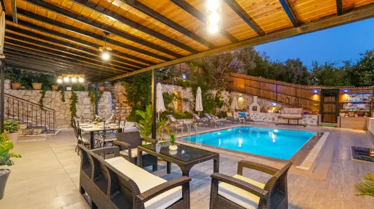 Kalkan Üzümlü Korunaklı Havuzlu Kiralık Villa | Teras Manzaralı