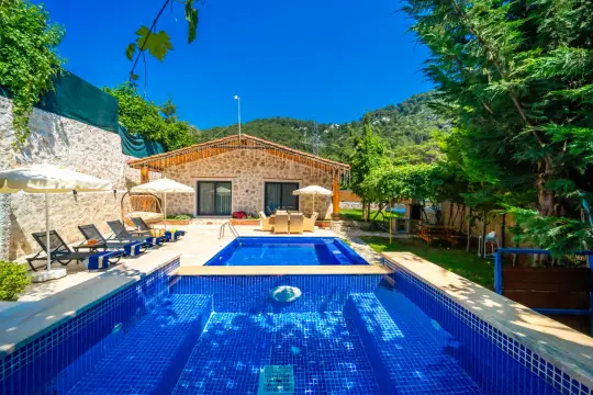 Kalkan İslamlar mevkiinde çeşitlilik gösteren konumlanan bu şık villa, 2 yatak odası ve 4 kişilik konaklama kapasitesiyle çekirdek odalar ve butik tatil tercihi olmayan küçük gruplar için ideal bir konaklama çözümü sunmaktadır. Yeşillikler içinde, temiz dağ havası ve kuş sesleri eşliğinde konumlanan villa; sakinlik, konfor ve mahremiyet coğrafyasını tek çatı altında buluşturarak şehir temposundan uzak, bir açıdan “sorunsuz tatil” modelinin kullanıldığı misafir profiline güçlü bir şekilde hitap eder.