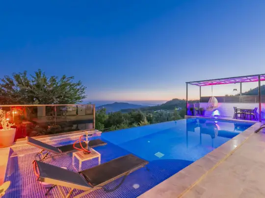 Özellikle Kalkan kiralık balayı villası arayışında olan misafirler için yüksek memnuniyet potansiyeli sunan bu özel villa, hem estetik hem de fonksiyonel detaylarıyla dikkat çeker. Geniş dış havuz gün boyu ferah bir kullanım alanı oluştururken, sığ havuz bölümü konfor ve görsel bütünlük açısından ayrıcalıklı bir atmosfer kazandırır. Jakuzili yapısı romantik tatil konseptini desteklerken, muhafazakar tasarımı sayesinde dışarıdan görünürlüğün minimumda tutulduğu korunaklı bir konaklama deneyimi sunulur. Kalkan İslamlar’da doğa manzaralı kiralık villa tercih etmek isteyen balayı çiftleri için bu seçenek; huzur, mahremiyet, romantizm ve premium tatil beklentilerini aynı çatı altında buluşturan güçlü bir ürün konumundadır.
