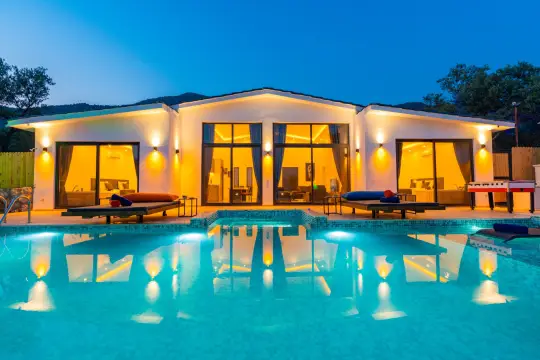 VILLA-13008, Kalkan Çavdır’da 4 kişilik, korunaklı havuz ve bahçe alanlı, jakuzili, langırt ve masa tenisli, doğa manzaralı villamızda gözlerden uzak keyifli bir tatil yapın.