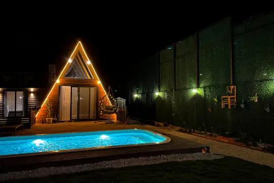Kaş / Uğrar mevkiinde yer alan, 2 yatak odalı ve 4 kişilik konaklama kapasitesine sahip bu geniş bahçeli bungalov, misafirlerine doğa ile iç içe, konforlu ve mahremiyet odaklı bir tatil deneyimi sunmaktadır. Korunaklı havuz alanı sayesinde özellikle muhafazakâr aileler, balayı çiftleri ve gözlerden uzak bir konaklama tercih eden misafirler için ideal bir alternatif oluşturmaktadır. Geniş bahçe alanı, çocuklu aileler için güvenli ve keyifli bir oyun ve dinlenme ortamı sağlarken, açık havada vakit geçirmek isteyen misafirler için de konforlu oturma-dinlenme köşeleri ile desteklenmektedir.