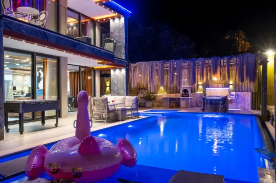 Çocuklu aileler düşünülerek tasarlanan villada, bahçe içerisinde yer alan çocuk oyun alanı minik misafirler için güvenli bir eğlence sunarken, langırt ile yetişkinler ve gençler için de keyifli zaman geçirme imkânı sağlar. Konforlu iç mekân dizaynı, fonksiyonel mutfak alanı ve rahat oturma gruplarıyla ev konforunda bir konaklama deneyimi yaşatır. Kaş merkeze ve bölgenin doğal güzelliklerine araçla kısa sürüş mesafesinde yer alan villa, sakinlik arayanlara doğa içinde, aynı zamanda çevredeki imkânlara ulaşımı kolay bir tatil alternatifi sunar.