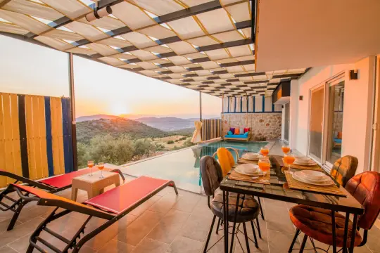 Kalkan’da bulunan VILLA-12659'nın benzersiz özelliklerinden biri, ferah bir verandaya sahip olmasıdır. Bu güzel veranda, sizlere özgürce vakit geçirebileceğiniz geniş bir alan sunar. Günün yorgunluğunu atabileceğiniz, açık havada keyifli bir akşam yemeği yiyebileceğiniz veya sadece serin bir içecek eşliğinde dinlenebileceğiniz bir ortam sağlar.